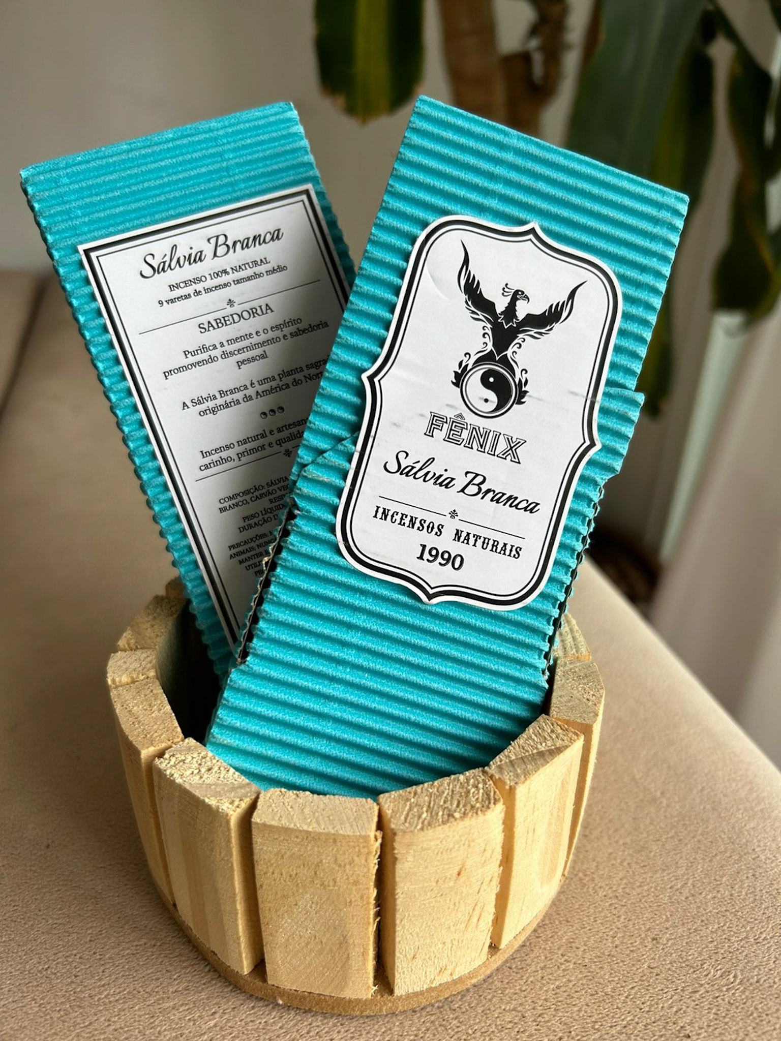 Composição: Sálvia Branca, Resina de Breu Branco, Resina de Olíbano, carvão vegetal e álcool de cereais.