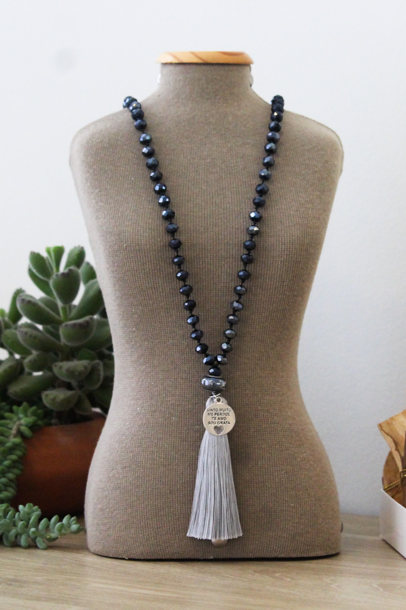 O japamala gratidão é feito com 108 contas de cristais em vidro e medalha do ho'oponopono (sinto muito, me perdoe, sou grata, eu te amo).